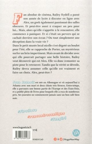 Fan absolue de cinéma, Bailey Rydell a passé son année de lycée à discuter en ligne avec Alex, un geek également passionné des salles obscures. Et peut-être aussi à craquer un peu pour lui... Mais, alors qu'elle s'apprête à le rencontrer, elle commence à paniquer. Et si c'était un pervers qui se cachait derrière son écran ? Ou tout simplement une déception dans la vraie vie ? Dans le petit musée local où elle s'est dégoté un boulot pour l'été, elle se rapproche de Porter, un mystérieux surfer un brin impertinent. Mais avant de décider avec qui elle pourrait partager une belle histoire, Bailey veut découvrir qui est Alex. Elle va donc remonter sa piste pour le retrouver. Tandis que la vérité se dévoile, Bailey devra assumer celle qu'elle est vraiment et faire un choix. Alex, peut-être ?