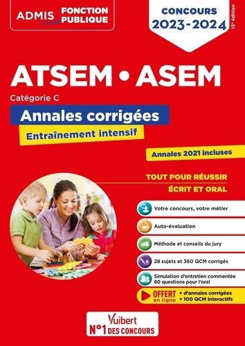 Un livre d'entraînement intensif au concours d'agent (territorial) spécialisé des écoles maternelles, avec : un test d'auto-évaluation ; une méthode pas à pas et des conseils de jury pour faire la différence lors de l'oral ; 360 QCM corrigés ; 14 sujets récents d'annales corrigés ; 14 sujets blancs corrigés ; Un dossier spécial ASEM (nouveau) 100 questions pour préparer l'entretien ; deux simulations d'entretien commentées ; des corrigés expliqués et détaillés. OFFERT EN LIGNE : + de sujets corrigés + 100 QCM interactifs sur la fonction publique territoriale + Nouveau pour les ASEM, des audios pour se préparer à la transcription écrite.