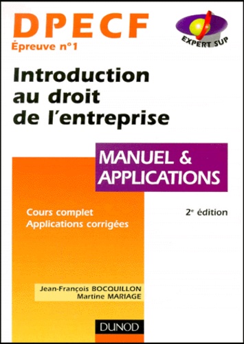 Dpecf Épreuve N° 1 Introduction Au Droit De L'entreprise - Manuel Et Applications, 2ème Édition