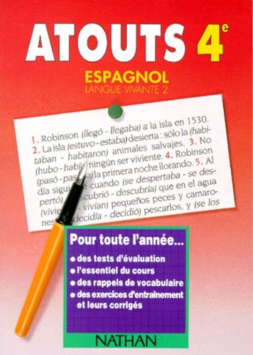 Un ouvrage essentiel pour maîtriser parfaitement le programme d'espagnol en 4è. Idéal pour tester ses connaissances et réviser son cours, méthodes et conseils à l'appui. Atouts vous permet de vous entraîner sur des exercices de difficulté progressive accompagnée de corrigés.