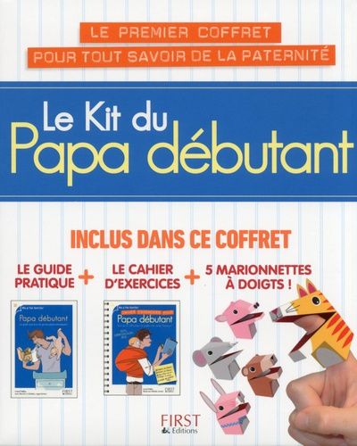 Dans une jolie boîte, vous trouverez : - Le livre Papa débutant, le guide pratique qui répond à toutes les questions que se posent les papas. - Le cahier d'exercices pour papa débutant, pour apprendre et se détendre - 5 marionnettes à doigts pour amuser les jeunes enfants en leur racontant des histoires plus vraies que nature ! Un cadeau original pour les futurs ou jeunes papas !