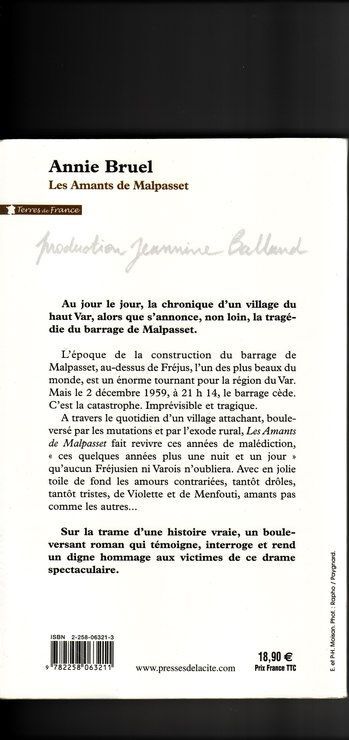 Au jour le jour, la chronique d'un village du haut Var, alors que s'annonce, non loin, la tragédie du barrage de Malpasset. L'époque de la construction du barrage de Malpasset, au-dessus de Fréjus, l'un des plus beaux du monde, est un énorme tournant pour la région du Var. Mais le 2 décembre 1959, à 21 h 14, le barrage cède. C'est la catastrophe. Imprévisible et tragique. A travers le quotidien d'un village attachant, bouleversé par les mutations et par l'exode rural, Les Amants de Malpasset fait revivre ces années de malédiction, " ces quelques années plus une nuit et un jour " qu'aucun Fréjusien ni Varois n'oubliera. Avec en jolie toile de fond les amours contrariées, tantôt drôles, tantôt tristes, de Violette et de Menfouti, amants pas comme les autres... Sur la trame d'une histoire vraie, un bouleversant roman qui témoigne, interroge et rend un digne hommage aux victimes de ce drame spectaculaire.