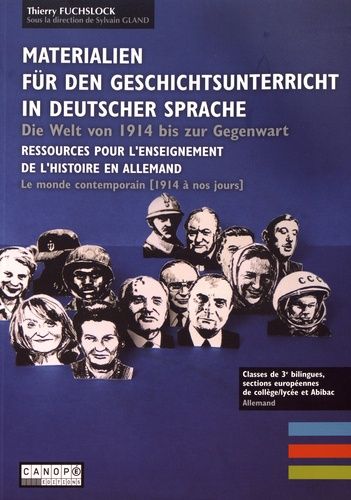 Materialien für den Geschichtsunterricht in deutscher Sprache (Die Welt von 1914 bis zur Gegenwart) est un manuel d'histoire en langue allemande destiné aux élèves des classes de 3e bilingue - français-allemand - ainsi que des sections européennes de collège et de lycée. II peut également être utilisé en section AbiBac (classes de Première et Terminale). La période traitée, divisée en trois grandes parties, s'étend de 1914 à nos jours. Cet ouvrage, sixième volume d'une série couvrant toutes les grandes périodes historiques (de l'Antiquité à nos jours), porte l'accent sur les grandes phases et les grandes ruptures de l'histoire mondiale depuis 1914 ainsi que sur des moments clés de l'histoire politique, économique et sociale de la France au XXe siècle. Les trois grandes parties de l'ouvrage (Europa, Schauplatz der beiden Weltkriege (1914-1945) ; Die Welt seit 1945 ; Die Franzosen/Französinnen in der Republik seit 1945) sont divisées en chapitres comprenant des exemples historiques (Themen) qui doivent permettre d'aborder des problématiques dans leur globalité. Le questionnement proposé dans chaque Thema a pour but de développer les compétences orales et écrites des élèves dans l'observation et l'analyse, à travers des approches pédagogiques diversifiées (travail individuel et/ou travail de groupe). La mise en oeuvre des compétences exigibles au cycle 4 du collège en Histoire constitue le fil directeur de ce manuel. Le présent ouvrage vient également offrir des exercices (Ich übe...) permettant d'approfondir les compétences méthodologiques en termes d'analyse de documents et de rédaction de récits historiques. Des travaux en relation avec le monde numérique sont également proposés. Une synthèse est présentée en début de chaque grande partie.Les chapitres, quant eux, sont introduits par des cartes, des frises chronologiques et/ou des documents permettant une contextualisation temporelle et spatiale de chaque question. Un glossaire, en fin d'ouvrage, reprend toutes les notions importantes de la période avec leur traduction en langue française. La richesse documentaire permettra à chacun de faire les choix pédagogiques qui lui conviennent et de s'adapter à son public, de collège comme de lycée. La forme adoptée est guidée par l'idée majeure de rendre l'élève actif face aux documents et de l'amener à construire ses réponses dans un double objectif, à la fois disciplinaire et linguistique. Dans cette optique, la trace écrite reste à réaliser par les classes.