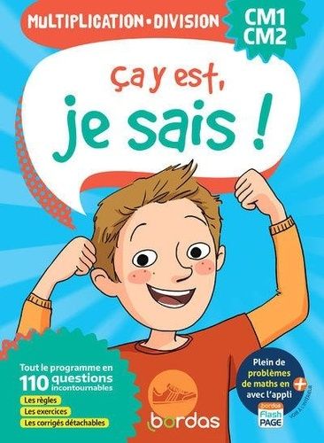 Le cahier de révision Ca y est, je sais ! Multiplication et division, offre une méthode simple pour bien maîtriser ces deux opérations au programme de mathématiques des classes de CM1 et CM2. Avec la collection Ca y est, je sais ! réviser la multiplication et la division devient un jeu d'enfant ! Un cahier de révision clair et efficace, entièrement conforme aux programmes scolaires, pour permettre à votre enfant de cibler son entraînement sur la multiplication et la division. L'apprentissage est progressif, et permet à votre enfant d'acquérir les bons réflexes et la bonne méthode pour réaliser les opérations en toute confiance. Sur chaque page, des espaces sont prévus pour écrire et poser les opérations. Chaque séquence de révision est structurée par une démarche simple : - Une question sur un point du programme, formulée simplement, comme se la pose un élève - Une réponse claire et synthétique - Des exercices pour mettre ce qui a été expliqué en application