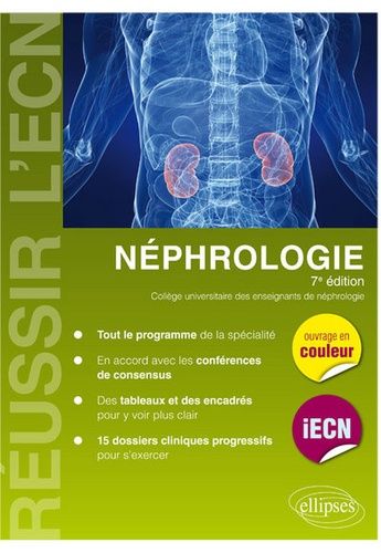 UE 2. De la conception à la naissance - Pathologie de la femme - Hérédité - L'enfant - L'adolescent Item 22. Grossesse normale Item 23. Principales complications de la grossesse UE 5. Handicap - Vieillissement - Dépendance - Douleur - Soins palliatifs - Accompagnement. Item 119. Vieillissement normal : aspects biologiques, fonctionnels et relationnels. Données épidémiologiques et sociologiques. Prévention du vieillissement pathologique Item 126. La personne âgée malade : particularités sémiologiques, psychologiques et thérapeutiques Item 318. Principe du bon usage du médicament et des thérapeutiques non médicamenteuses Item 326. Prescription et surveillance des classes de médicaments les plus courantes chez l'adulte et chez l'enfant UE 6. Maladies transmissibles - Risques sanitaires - Santé au travail Item 157. Infections urinaires de l'enfant et de l'adulte UE 7. Inflammation - Immunopathologie Item 190. Lupus érythémateux disséminé. Syndrome des antiphospholipides Item 197. Transplantation d'organes Item 217. Amylose (atteinte rénale de l'amylose AL) UE 8. Circulation - Métabolismes Item 221. Hypertension artérielle de l'adulte Item 245. Diabète sucré de type 1 et 2 de l'enfant et de l'adulte Item 254. OEdèmes des membres inférieurs localisés ou généralisés Item 255. Elévation de la créatininémie Item 256. Protéinurie et syndrome néphrotique de l'adulte et de l'enfant Item 257. Hématurie Item 258. Néphropathie glomérulaire Item 259. Néphropathie interstitielle Item 260. Néphropathie vasculaire Item 261. Insuffi sance rénale chronique chez l'adulte et l'enfant Item 262. Lithiase urinaire Item 263. Polykystose rénale Item 264. Prescription et surveillance des diurétiques Item 265. Troubles de l'équilibre acido-basique et désordres hydroélectrolytiques Item 265. Hypocalcémie Item 266. Hypercalcémie UE 9. Cancérologie. Onco-hématologie Item 317. Myélome multiple des os UE 11. Urgences Item 339. Prise en charge d'une patiente atteinte de pré-éclampsie Item 343. Insuffisance rénale aiguë - Anurie Synthèse : la classification des néphropathies