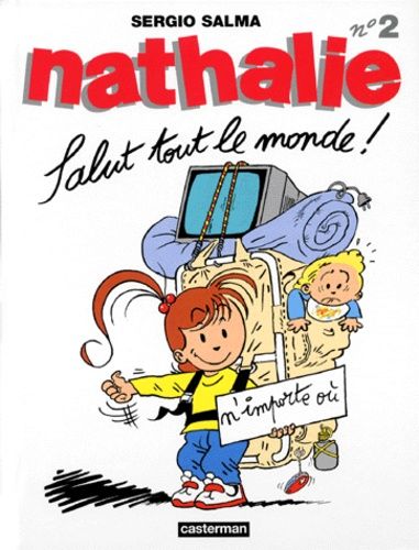 Le rêve de Nathalie, c'est toujours de partir, d'aller à la découverte d'un Monde avec un grand M comme dans Maman. Dans sa fantasmagorie, le grenier devient l'Annapurna, la cave, la fosse des Mariannes, le congélateur, la banquise et l'eau de son bain, l'océan. Dans Salut tout le monde ! , l'accent est à nouveau mis sur les voyages et les découvertes. On retrouve le bébé qui sert à ses heures de cobaye ou de souffre-douleur, le Papy, la Mamy ; on découvre de nouveaux personnages comme le petit voisin et son inénarrable matou malchanceux baptisé Vendredi 13. L'album se compose, à l'instar du premier, de gags en une planche qui se lisent à la suite comme autant de tranches de vie.
