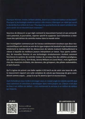 Pourquoi Michael Jordan, brillant athlète, était-il un si mauvais batteur en baseball ? Pourquoi la technologie moderne peine-t-elle encore à fabriquer un robot qui aurait la dextérité d'un enfant de 5 ans ? Pourquoi les quarterbacks de talent semblent toujours savoir où se trouvent leurs receveurs ? Soucieux de découvrir ce qui régit vraiment le mouvement humain et son extraordinaire potentiel, le journaliste, reporter sportif et supporter Zach Schonbrun a interviewé des spécialistes du contrôle moteur dans le monde entier. Son investigation commence par les travaux extrêmement novateurs que deux neuroscientifiques ont menés au sein de la Ligue majeure de baseball et qui bouleversent totalement la manière dont les découvreurs de talents évaluent habituellement la vitesse à laquelle les meilleurs joueurs interprètent un lancer. Tous sports confondus, de nouvelles théories et une technologie révolutionnaire révèlent comment fonctionne le système de contrôle moteur du cerveau chez des athlètes prodigieux, tels que Stephen Curry, Tom Brady, Serena Williams et Lionel Messi ; mais également chez des musiciens brillants, des danseurs, des grimpeurs, des pilotes automobiles, et tant d'autres. Qu'il s'agisse de prévoir une balle rapide à 153 km/h ou de saisir une tasse de café, le mouvement requiert une suite complexe de calculs que beaucoup de gens considèrent comme acquis... jusqu'à ce qu'ils aient lu Sport et neurosciences. Zach Schonbrun nous invite à envisager sous un nouvel angle les talents sportifs que nous admirons et cherchons à développer dans notre propre vie. L'heure n'est plus au bras à un million de dollars : c'est maintenant le cerveau à un million de dollars qui importe.